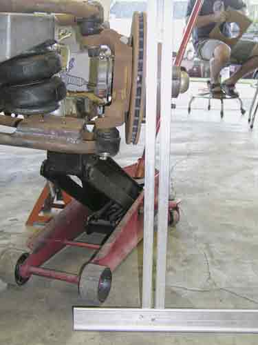 ![]() This view of the right side shows the problem with the air springs. The plate on the lower control arm seems to be way to far to the outside of the car. |
