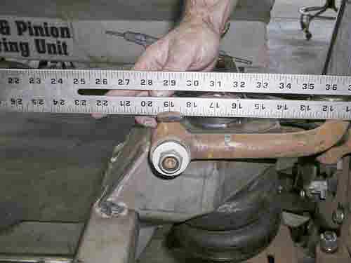 ![]() This shows that with the control arms adjusted all the way toward the center of the car, I am at 29" center to center on the upper control arm mounts yet still had the severe camber problem noted above and below. |