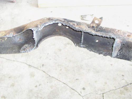 Close up of the outer frame rail with the cross member removed.